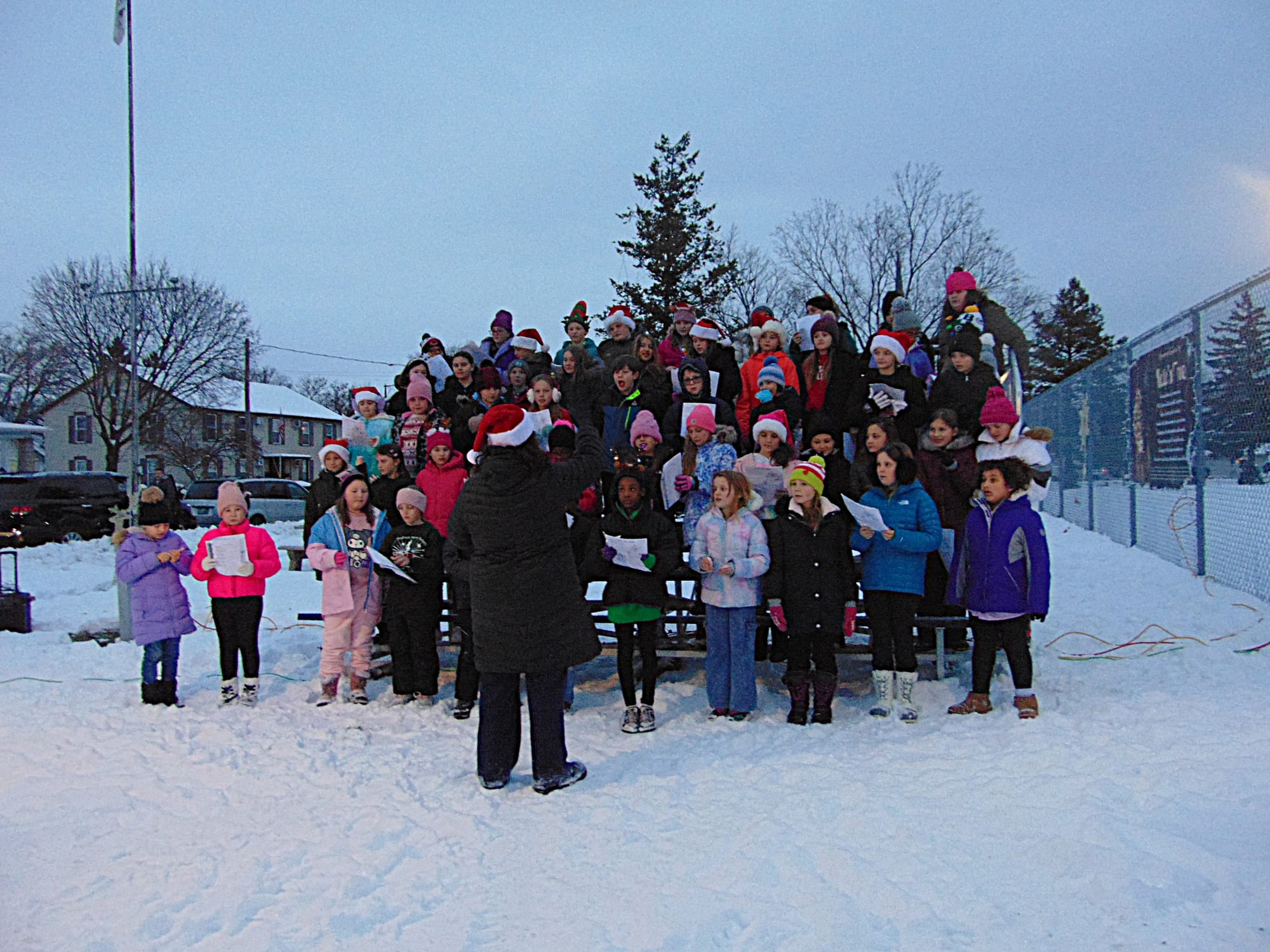 On Friday night, young ones played in the snow as sounds of the season filled Settlers Park. The talented Willowbrook Middle School choir sang traditional and upbeat Christmas carols under the direction of music teacher Haley Gotzsche.