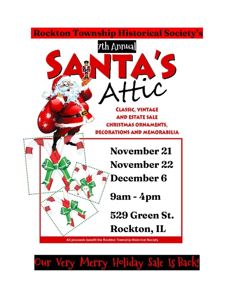 Sat Dec. 6, 2025, 9 am - 4 pm, Rockton Township Historical Society, Green and Blackhawk, 529 Green St., Rockton, IL 61072