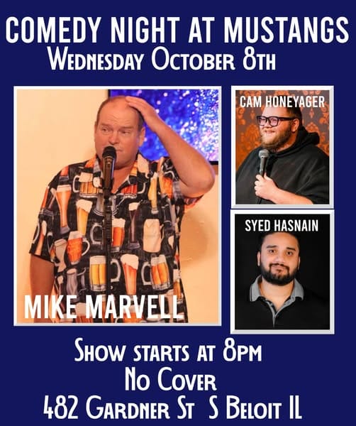 Wed Oct. 8, 2025, 8:00 pm, Mustangs Bar & Grill, 482 Gardner St. South Beloit IL, 61080