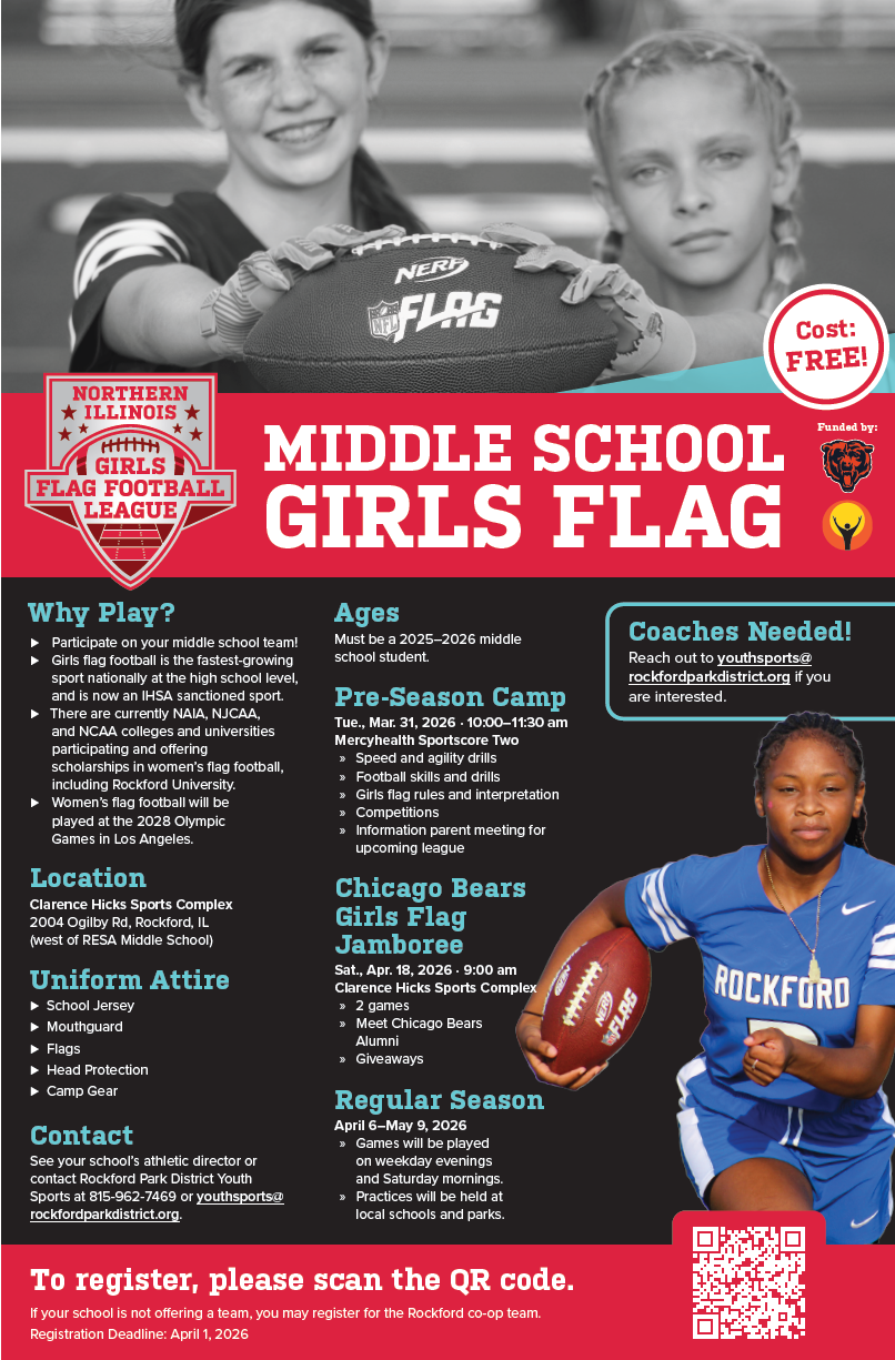 The Rockford Park District recently announced that Girls Flag Football would take place in the Spring time instead of the Fall.