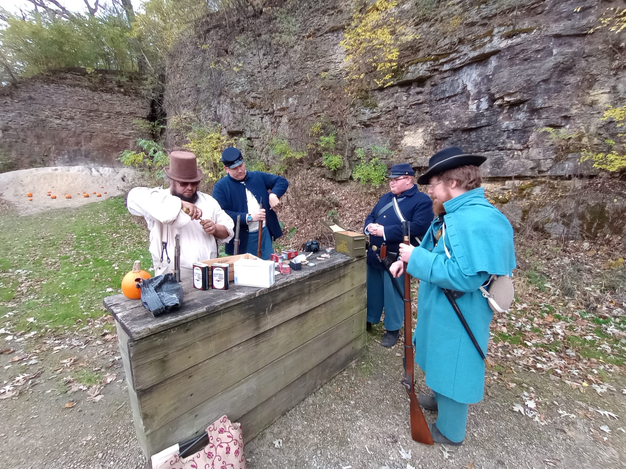 Visitors were treated to live demonstrations of 19th-century firearms from Belgian imports to domestically made rifles and the chance to fire them under the direction of reenactors. Ryan Stallman (video below) demonstrated how to load a "musket' style rifle. He mentioned that by the civil war, soldiers could load and fire a weapon 3-4 times a minute.