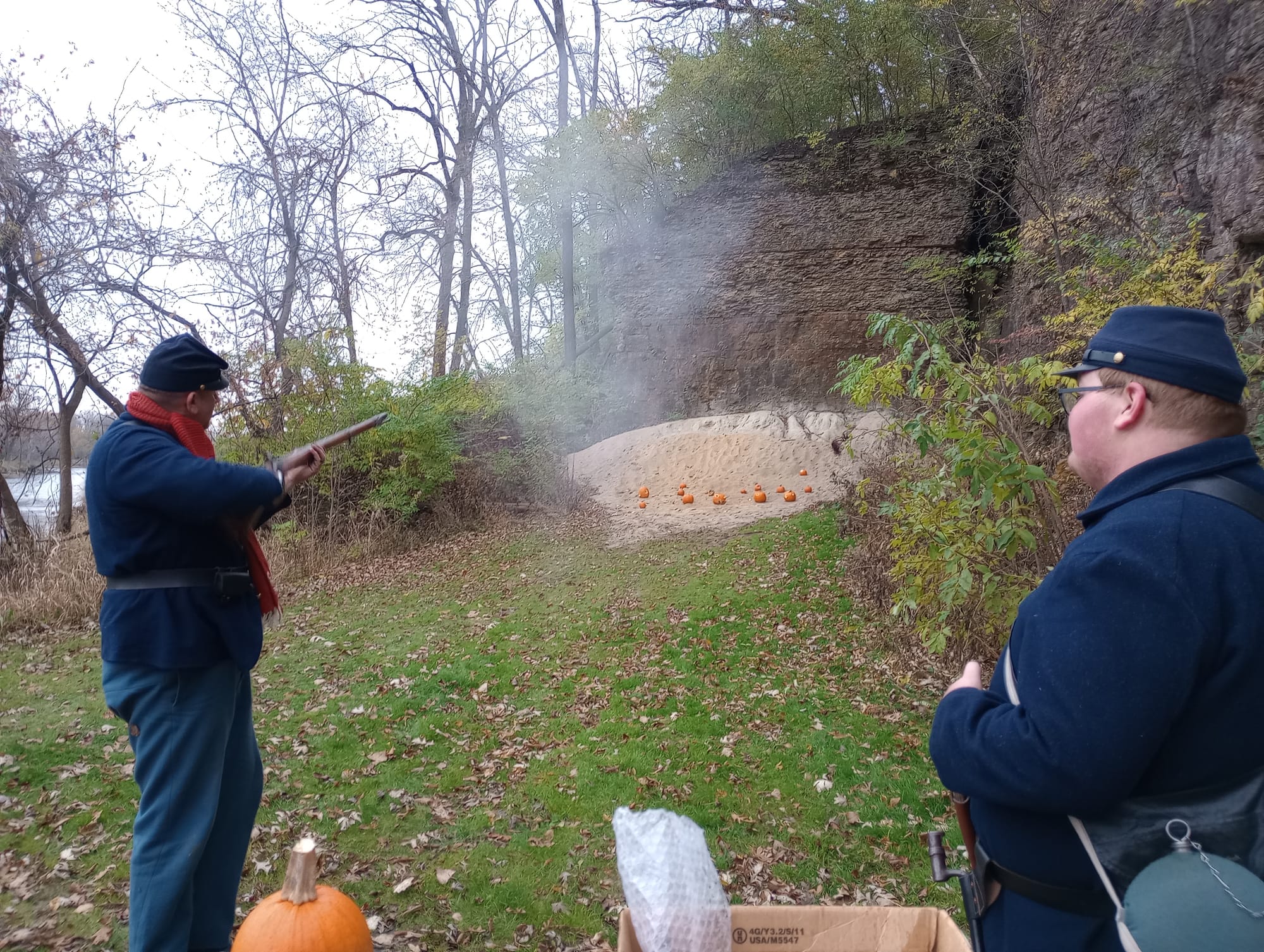 ROCKTON - Ryan Stallman demonstrating how to load and fire a Civil War era rifle Civil War