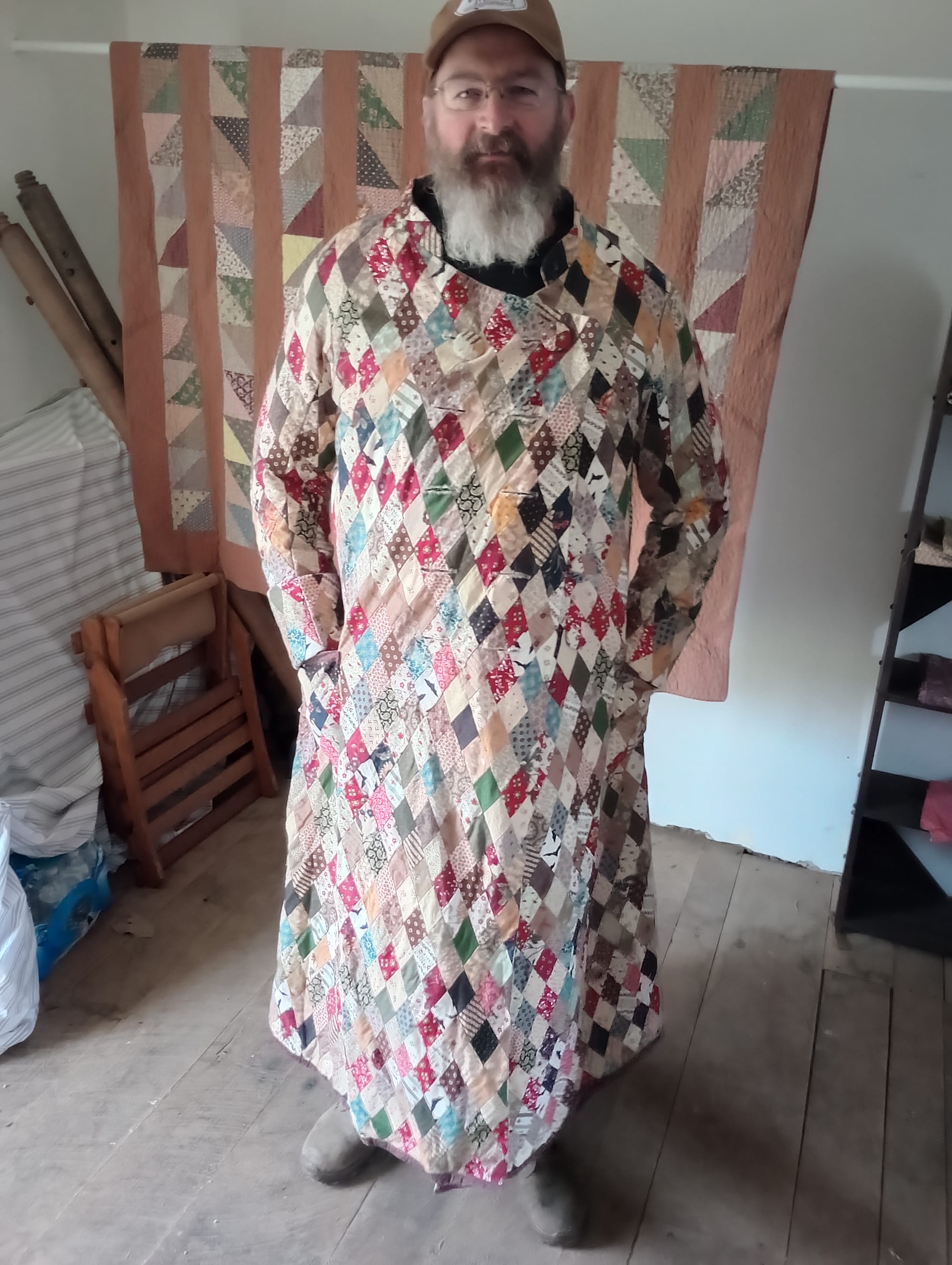 During her presentation on quilting styles and war aid efforts via sewing with small groups, Ms. Harper demonstrates a delicate touch of giving enough information to her audience that raises their curiosity and excitement about quilting. This was not a rehearsed spiel. It was an organic back and forth that would make any docent at a museum admire what was going on in the quilting cabin at Macktown, highlighted by the piece below.