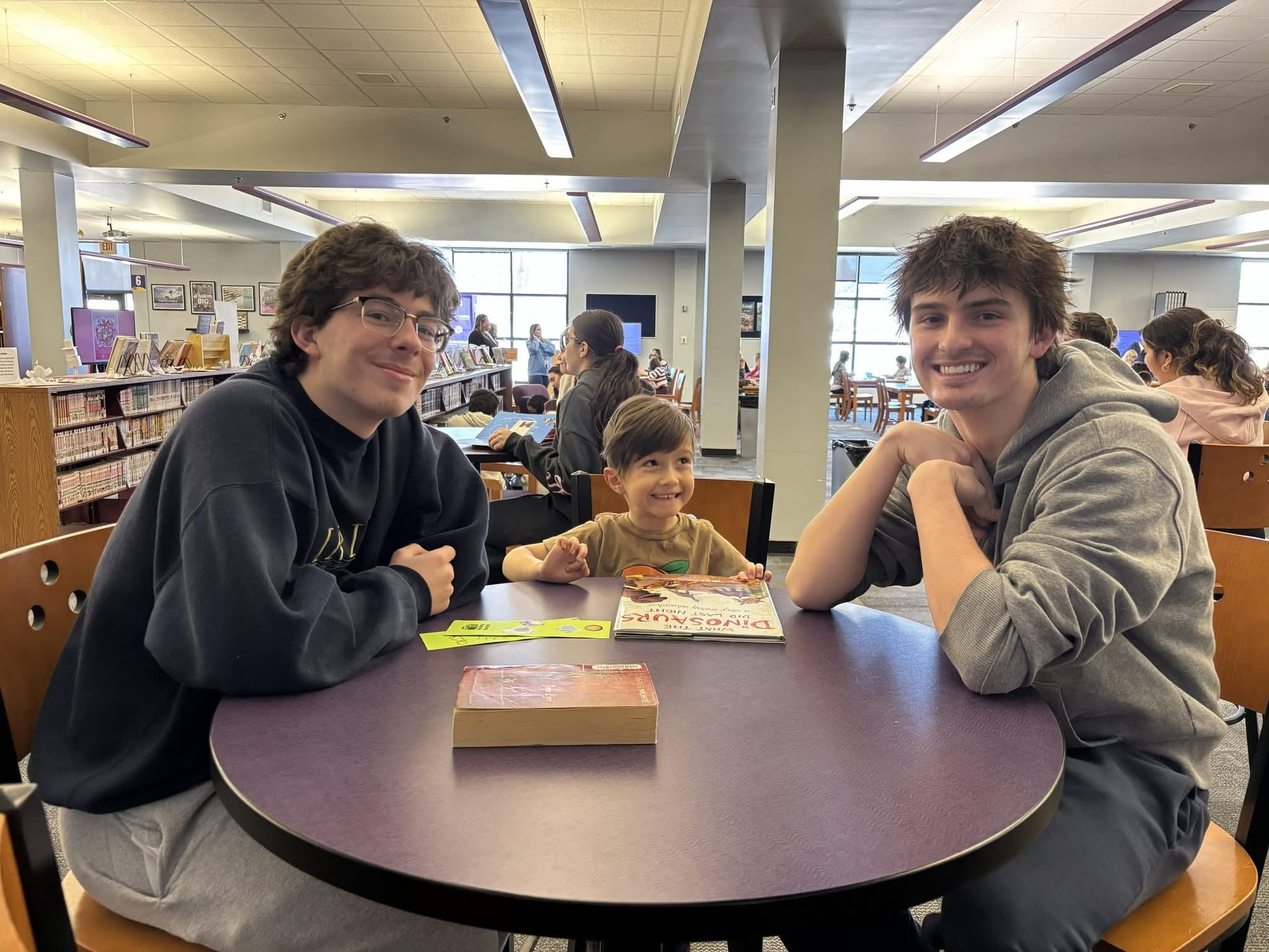 Hononegah English students read books and made bookmarks in the Hononegah Library with Rockton Grade School students on Jan. 29 and 30, 2026, a continuation of the Reading Buddies program between the two schools that happily spans an age gap of about ten years.
