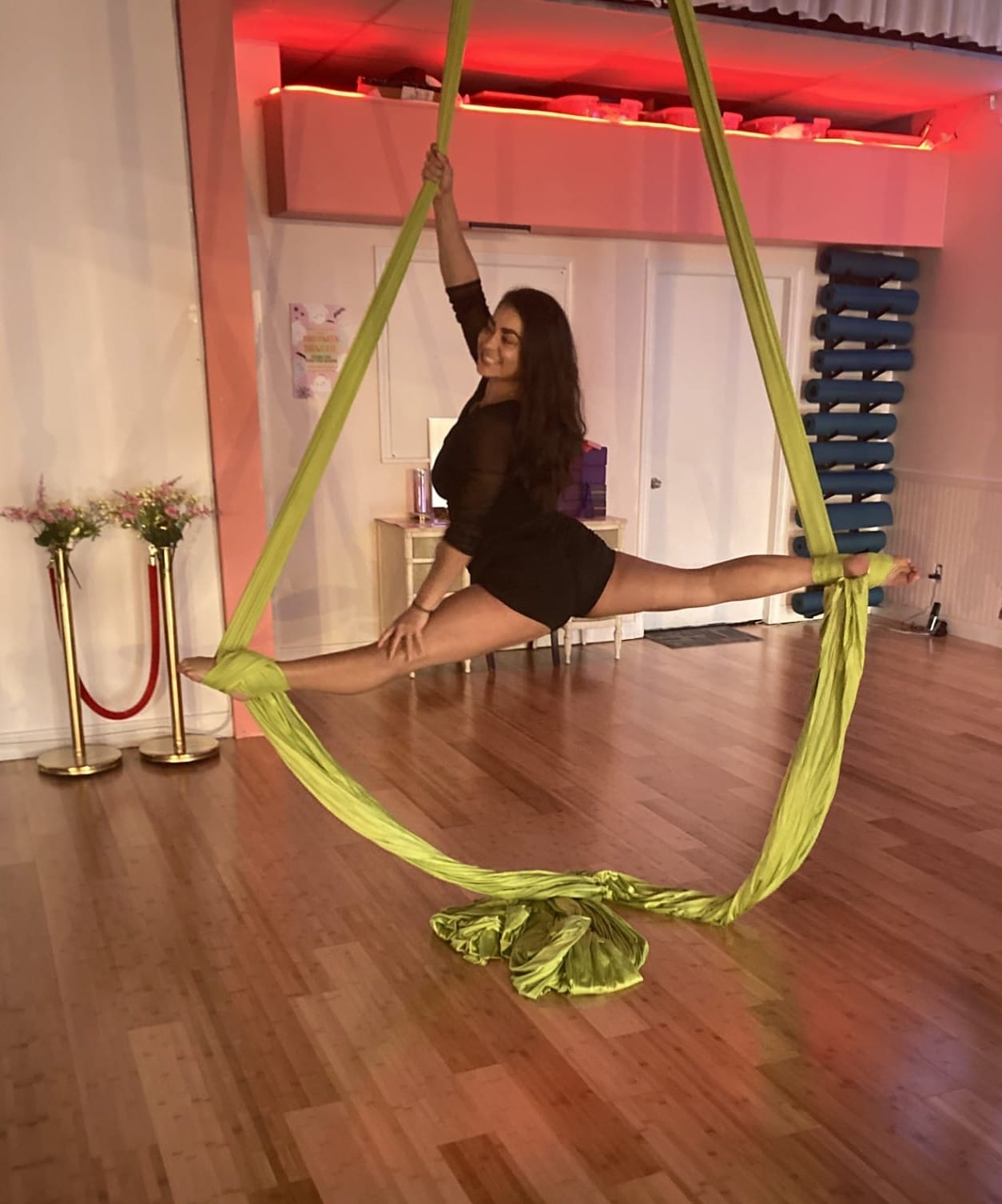 All three women are self-taught through online classes. They instruct clients in a mainstream form of pole dance and aerial silks, using nothing more than gravity and their bodies.