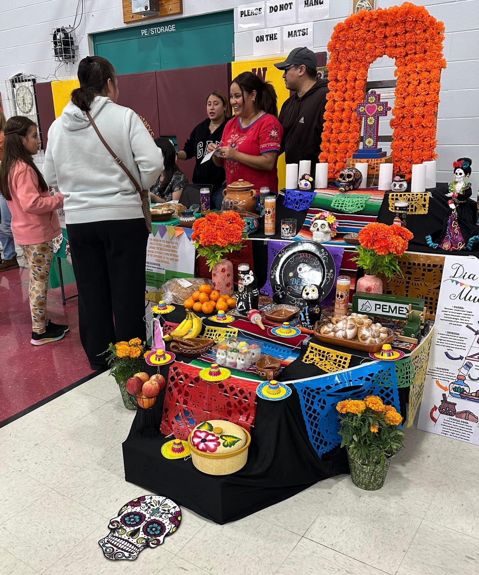 The Mexico table featured traditional breads along with sugar skull face painting, an ofrenda adorned with foods and marigolds, and a lotería activity. Ingrid Dominguez was in charge of representing Mexico and played a large role in making the entire night happen. For Mrs. Dominguez, the main driver in helping support the Cultural Night was to give “children a different perspective on different cultures and heritages.” She and her husband are both from Veracruz, Mexico, and they have two children in the district. Her commitment to reaching out to parents and getting other cultural backgrounds involved helped make the night a success.