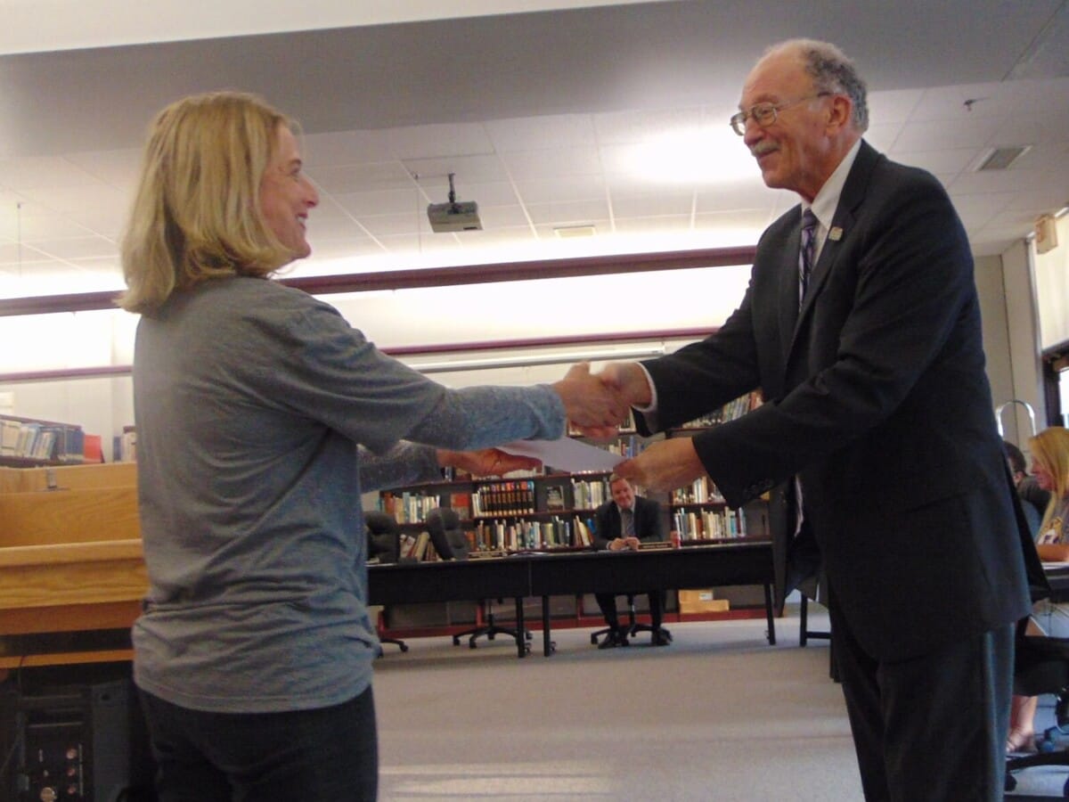 “Maintaining high academic standards is a priority,” Moore concluded. Kurlinkus gave Moore a certificate in recognition as loud applause filled the room.