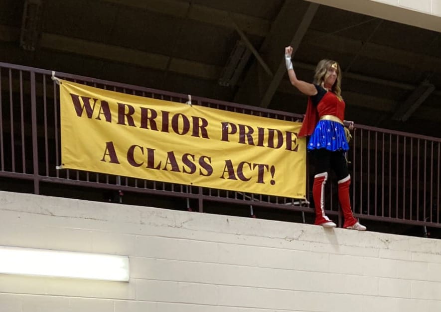 Stephen Mack Middle School gymnasium was filled with excited students on the afternoon of October 31, 2025. It was time for the 27th annual Class Act program in the school gymnasium. Theme music played as teachers and staff, dressed as superheroes, fighting for justice and kindness, were greeted with wild enthusiasm. SMMS Counselor Beth DeVries, dressed as Wonder-Woman, dropped down from the second-story balcony to the delight of hundreds of students.