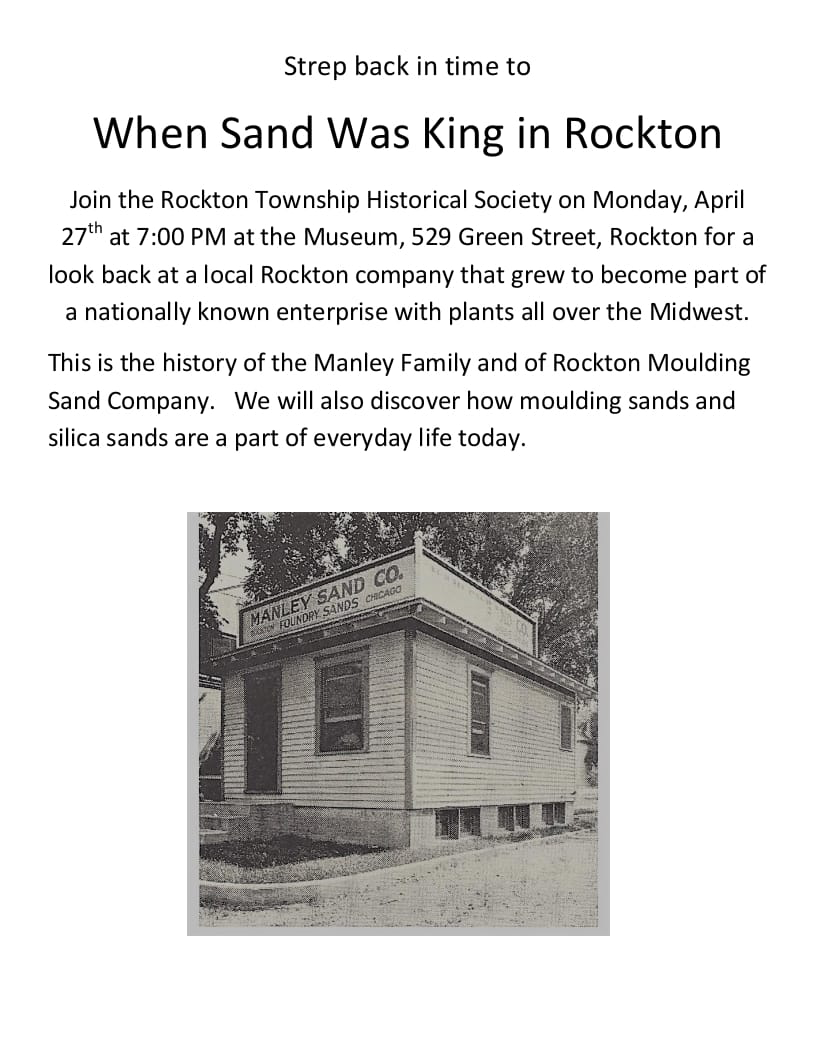 Learn about another chapter in Rockton history at the April 27th program at the RTHS Museum in Rockton, 7:00 pm.